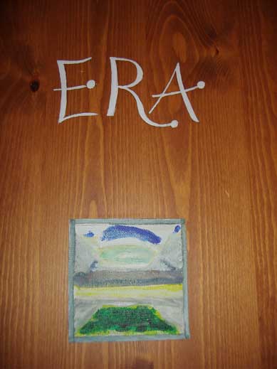L'habitació de ponent del segon pis aguaita al carrer de la Font, que dóna a l'antiga era del poble. Espai de feina i de festa, de relació i contacte. Espai necessari i recorrent. Espai humanitzat per fer de lligam entre el paisatge feréstec, el paisatge conreat i el paisatge urbanitzat. Sense l'escenari físic i simbòlic que representa, no hi ha teatre, ni hi ha vida social. La necessària relació per a fer possible el pas del fruit de la terra al producte elaborat. De la paraula al text. |